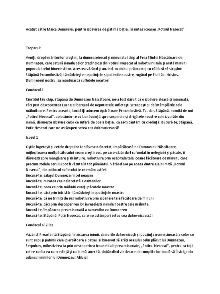 Imparate ceresc, mangaietorule, duhul adevarului, care pretutindeni esti si toate le plinesti, vistierul bunatatilor si datatorule de viata, vino si te salasluieste intru noi si ne... Să înţelegem durerile trupeşti ca oglindire a suferinţei veşnice şi bold pentru a cere dumnezeiasca milostivire: Feb 18, 2019 · acatist pentru izbavirea de boala. Acatist pentru izbăvirea de necazuri mai întâi se spun rugăciunile începătoare:. In numele tatalui si al fiului si al sfantului duh.