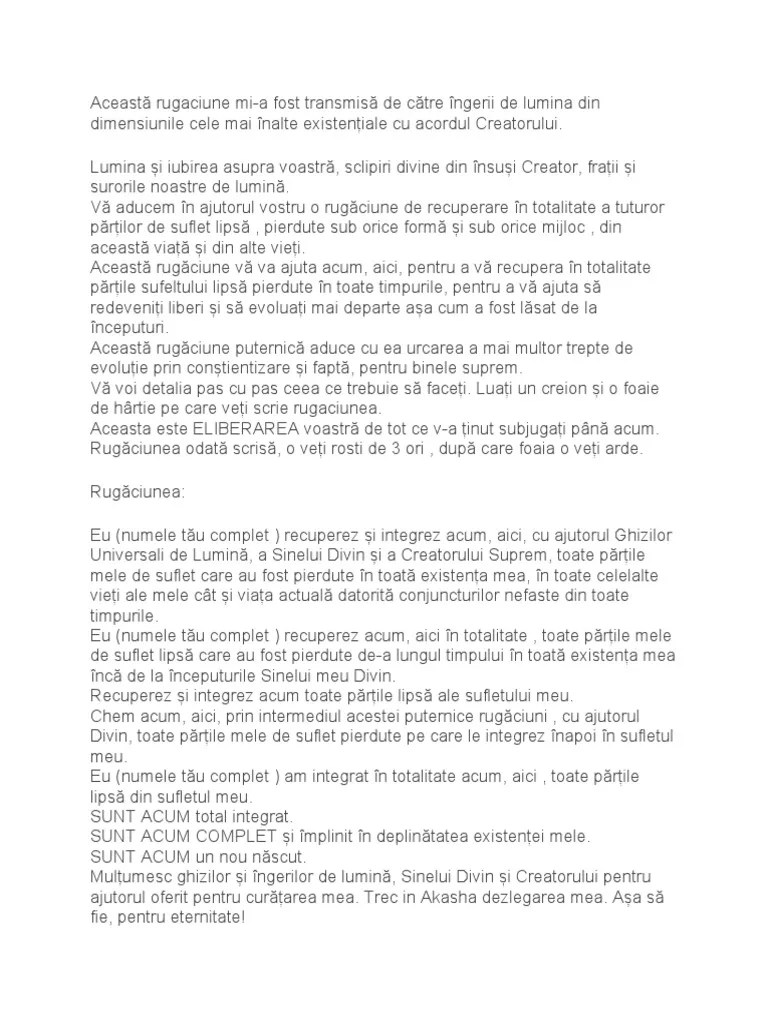 Dumnezeule, ascultă rugăciunea mea, pleacă urechea ta la graiurile gurii mele. În tot ceasul astăzi mă povățuiește și în toate mă sprijinește. Vă cer ajutorul pentru a …. Ei bine, daca ai incercat toate metodele iti propunem sa te intorci si …
