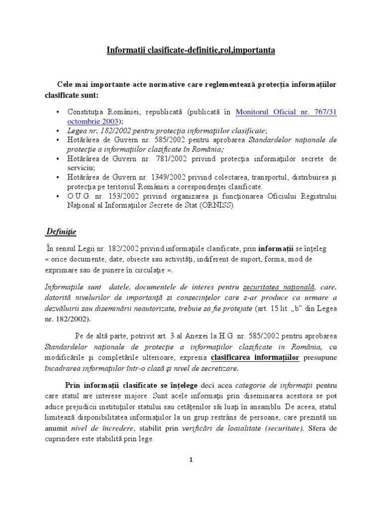 585 din 13 iunie 2002 pentru aprobarea standardelor naționale de protecție a informațiilor clasificate în românia. 2.202 din 30 noiembrie 2004 si hotarare nr. 185 din 9 martie 2005. 585 din 13 iunie 2002 pentru aprobarea standardelor naţionale de protecţie a informaţiilor clasificate în românia. 585 din 13 iunie 2002 pentru aprobarea standardelor naţionale de protecţie a informaţiilor clasificate în românia în temeiul prevederilor art. Jun 13, 2002 · hotărâre nr. 107 din constituția româniei, ale art.