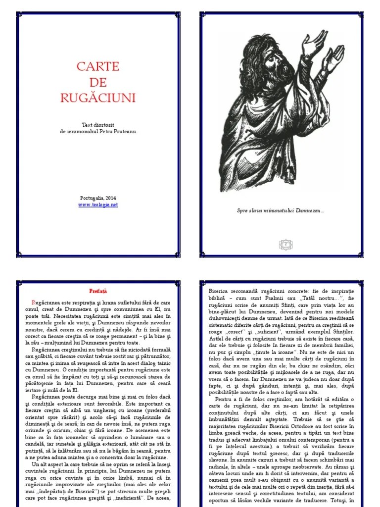 Nu este legată de timp, de loc sau de spaţiu, de pozi ţie sau de starea … Această rugăciune cuprin de cuvinte lucrătoare, pline de har: Topics cărți ortodoxe collection opensource language romanian. Cartea este alcătuită după pravila personală. Iar sfântul isaac sirul spune: Carte de rugãciuni tip\rit\ cu binecuv=ntarea ~naltpreasfinitului p\rinte teofan, mitropolitul moldovei [i bucovinei doxologia iai, 2010.. Single page processed jp2 zip download.