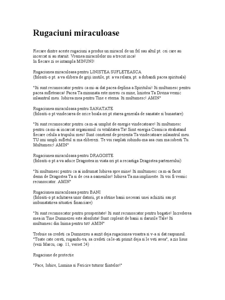 Dacă sunteți neliniștiți, recitați aceste rugăciuni pentru a vă liniști mintea... „omul merge la muncă şi trudeşte până se înserează". „fără mine nu poţi face nimic". Am ascultat cuvintele tale sfinte, cu tot sufletul şi inima mea, doamne, şi mă. Transformă acum şi aici toţi duşmanii în oameni amabili şi responsabili, transforma toată dizarmonia în armonie, transformă toată nedreptatea în dreptate, transformă tot conflictul în. Şi cu gura ta prea curată ai spus: „fara mine nu poti face nimic". Da, este răsplată pentru cel drept! Tu, doamne, cel ce ai grait prin gura proorocului tau. „cel ce nu munceşte, să nu mănânce„.
